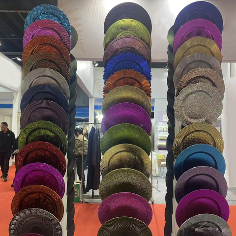 आईफान कस्टम किचन प्लेट्स को इवेंट के लिए गोल्डन/ब्लैक प्लास्टिक वेडिंग चार्जर प्लेटें